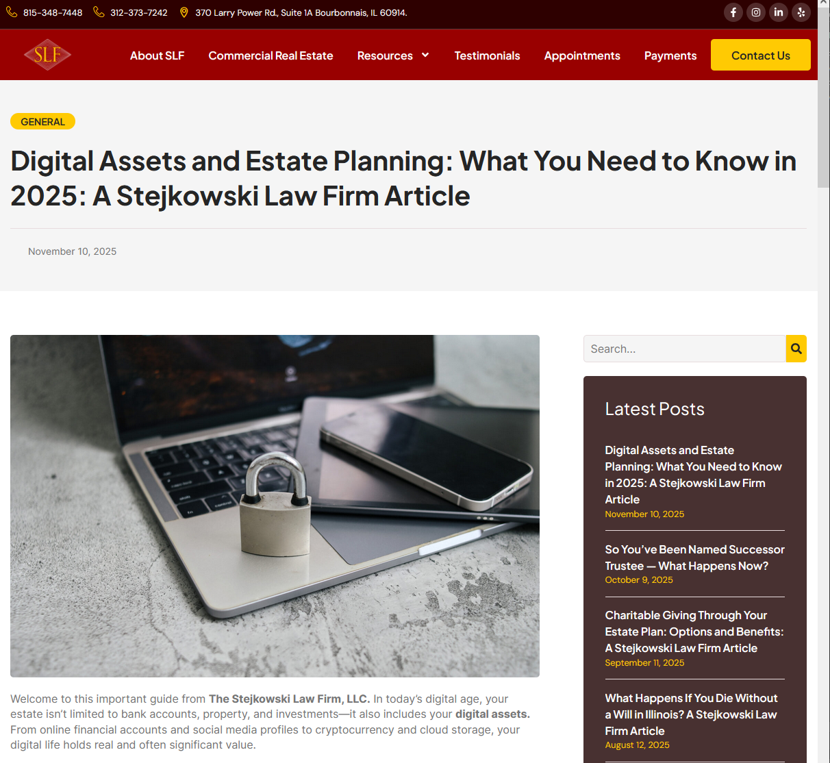 Contact an estate planning firm like StejLaw to draft the legal documents, and feel free to ask for guidance on securing your digital footprint for the future.